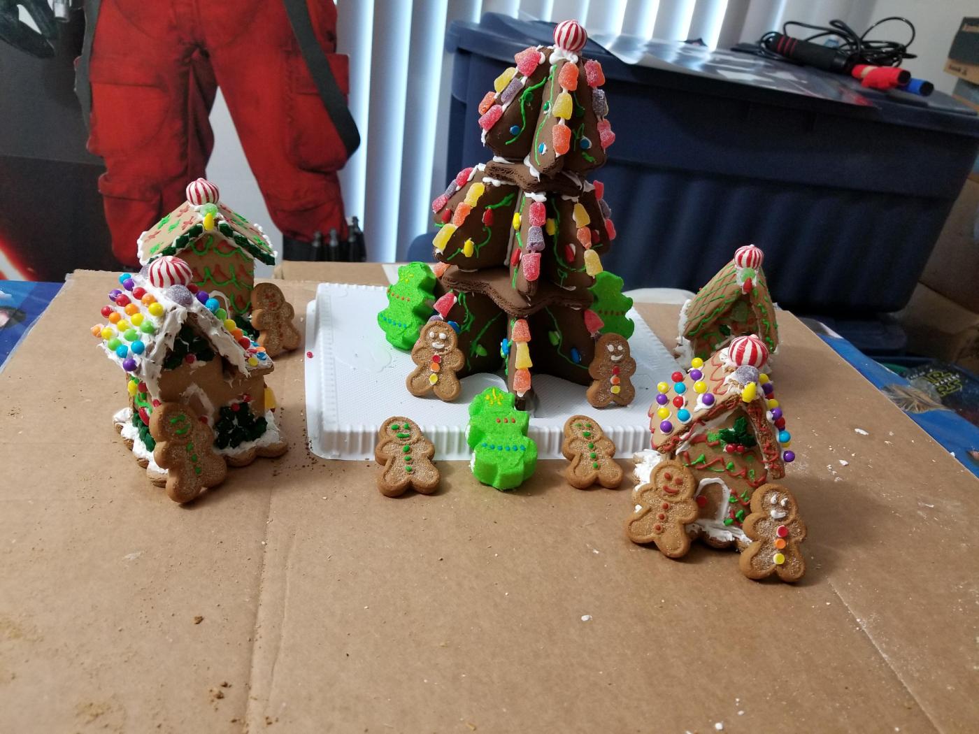 My husband took the time to put the houses and the tree together, while I went to work decorating them when they were done. It took about four hours total, but I think it was well worth it!