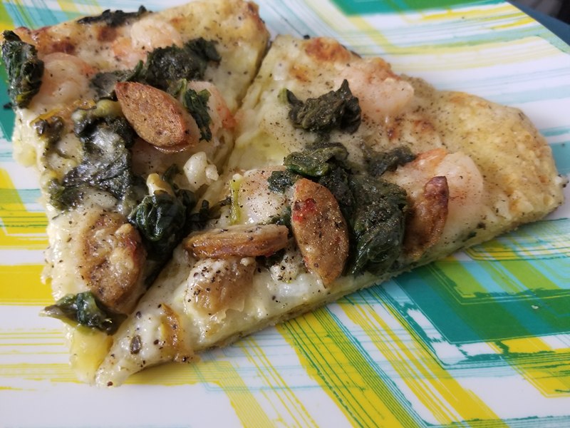 I’m from New York. I was raised in New York all my life, so I know good pizza when I see it, and I know how important a good crust is to a good pizza. But sometimes there are times when you want pizza without a heavy crust, and that’s where I come in, to bring you my egg dough pizza crust, using just four simple ingredients that holds up well enough to let you eat it like, well, pizza!!