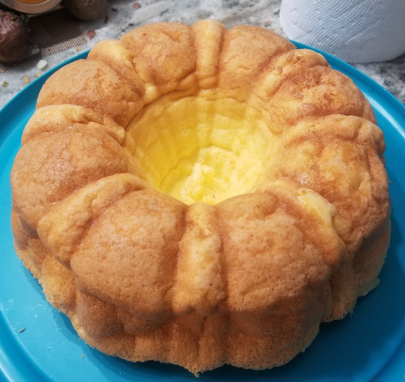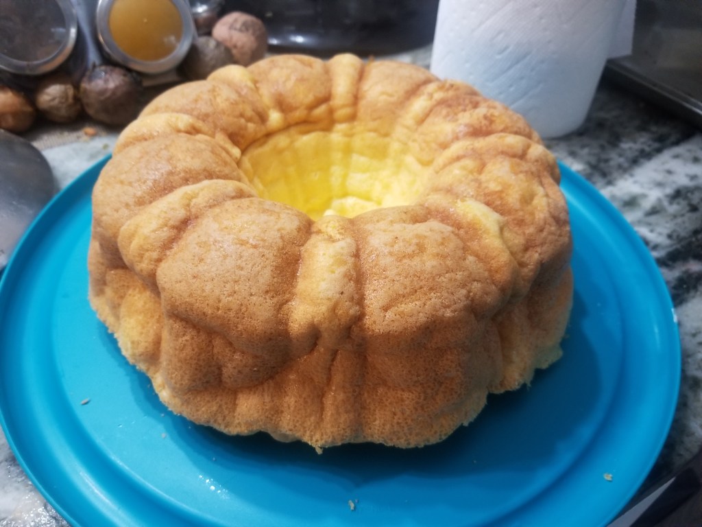 - Move your batter into your bundt pan and then place in the oven, cooking for about 25-30 minutes. My oven tends to overbake quickly, so you might need more time.