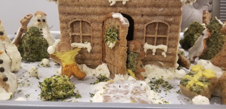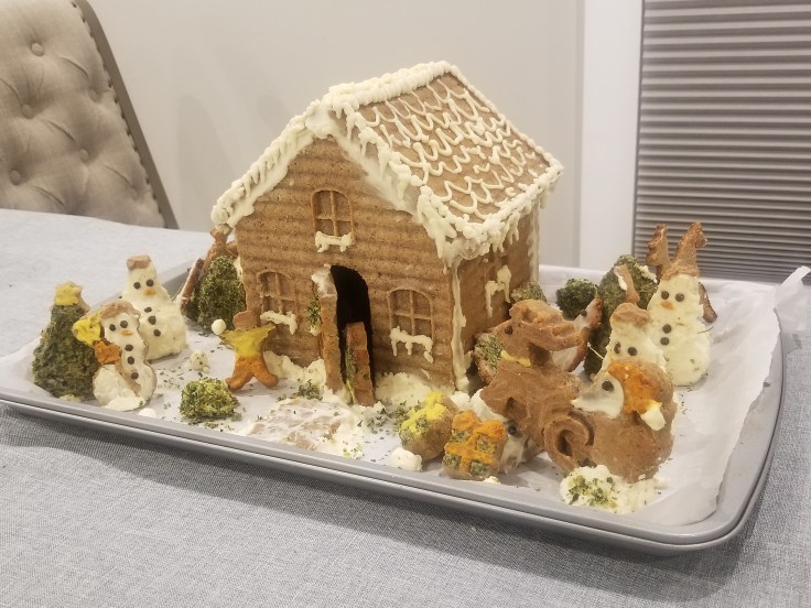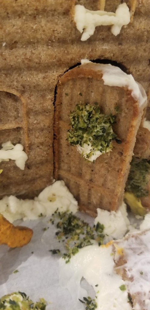 Here are some of the pictures from our first attempt at this recipe! Adding xanthan gum is optional, but we find that it really helps the pieces hold together well. We had to remake several of the walls/roof panels because they crumbled on the first go, which is why we now recommend making sure that you put them in the refrigerator post-bake and give it at least a day before working with them.
