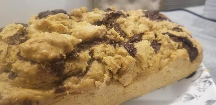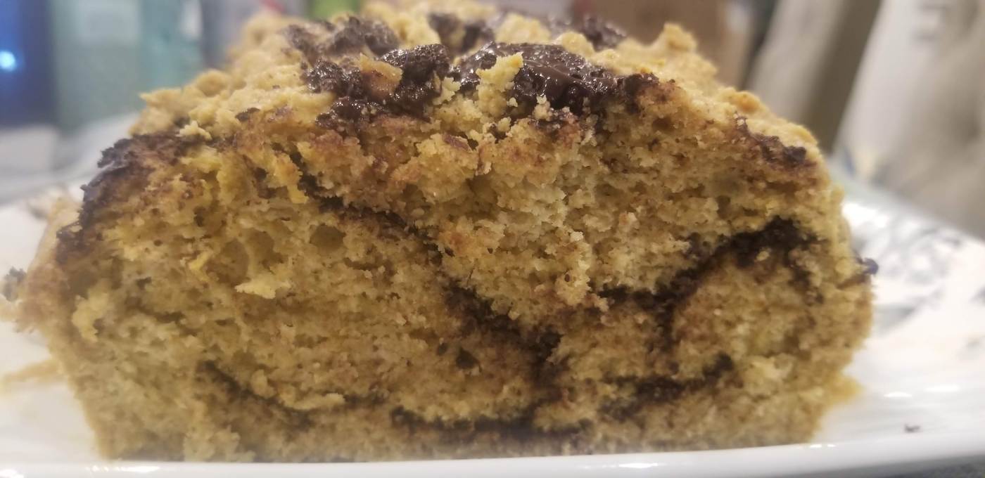The same goes for the chocolate swirl. I happened to have a chocolate coconut bar on hand, but you could always just swirl coconut flakes into a regular chocolate bar. Or add nuts! Remember, you’re only limited by your creativity, so make it your own! Remember: you’re making bread, not a cake. Even if you accidentally overbake it and it comes out a little dry, just slather it some more nut butter and you’re good to go!