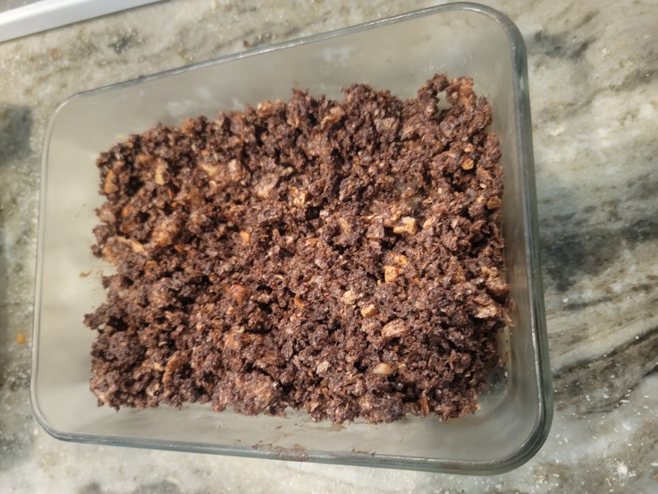 But I took on the challenge and I have to say that I’m pretty pleased with the result. Throwing in fried chicken skins helps provide an extra boost of collagen and also helps keep that really crunchy, salty texture that you would expect from granola, while the extra chocolate helps give it a Cocoa Puffs kind of taste.